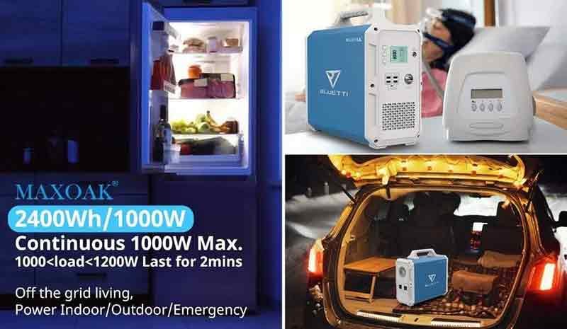 Bluetti Eb240 Portable Solar Generator – MaxOak Bluetti EB240 largest, high-capacity moveable energy station is provided with over 2400Wh/1000W of lithium battery storage for long runtimes on all your vital equipment. A versatile energy storage system backs up in your home and scales, reliable access to energy sources at any time.